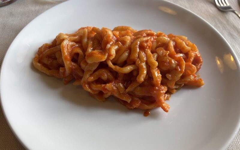 Questa pasta povera nasce dalla tradizione contadina ed è perfetta per trattenere condimenti saporiti come il sugo all’aglione. Oltre alla versione con l’aglione, esistono varianti come i pici alle briciole o i pici all’Etrusca, ma il condimento con il sugo di pomodoro e aglione rimane il più iconico.