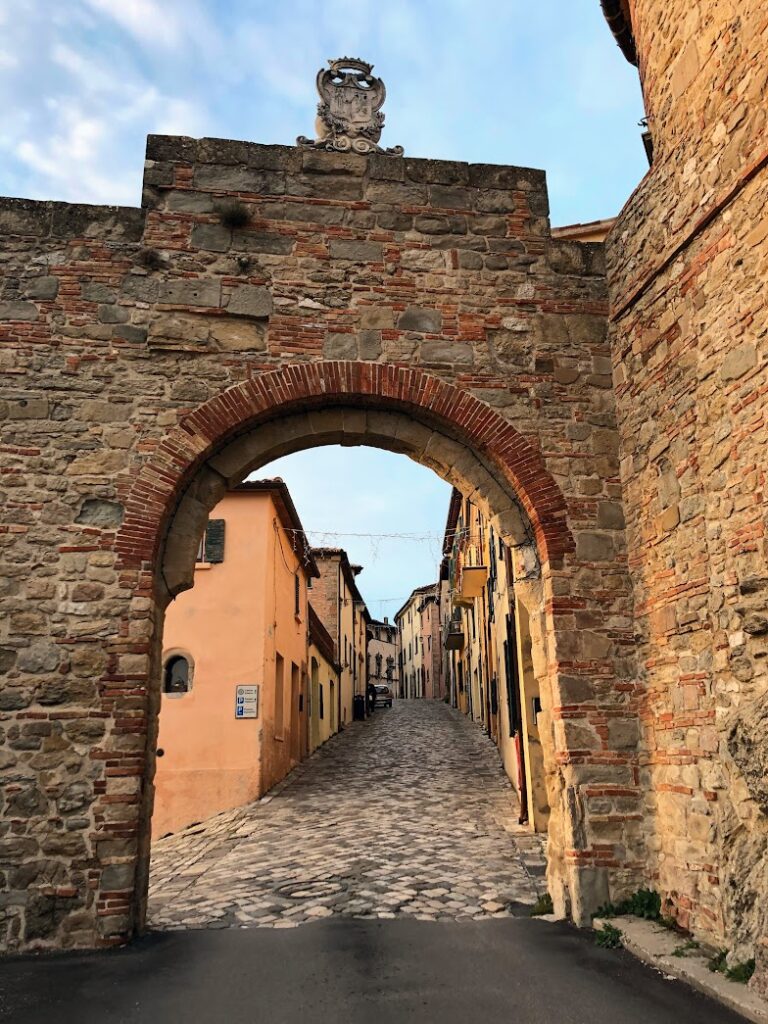 Dal cuore religioso a quello civile: la Torre Civica e la Piazza Dante rappresentano il centro vitale del borgo. È qui che Dante trovò ospitalità, e dove nel 1213 San Francesco d’Assisi incontrò il conte Orlando di Chiusi. Da quell’incontro nacque la donazione del Monte della Verna in Casentino, destinato a diventare uno dei luoghi più importanti della spiritualità francescana.