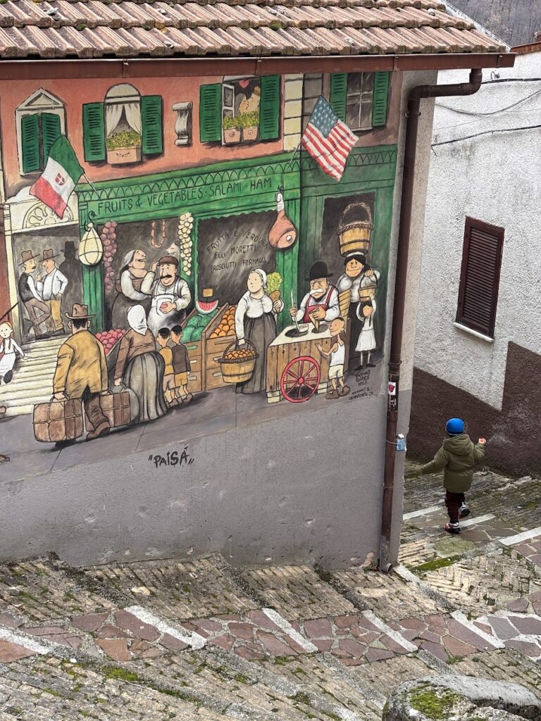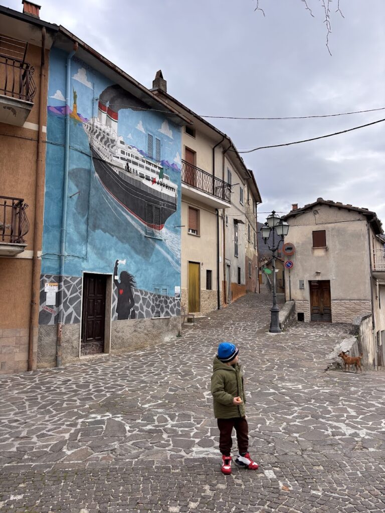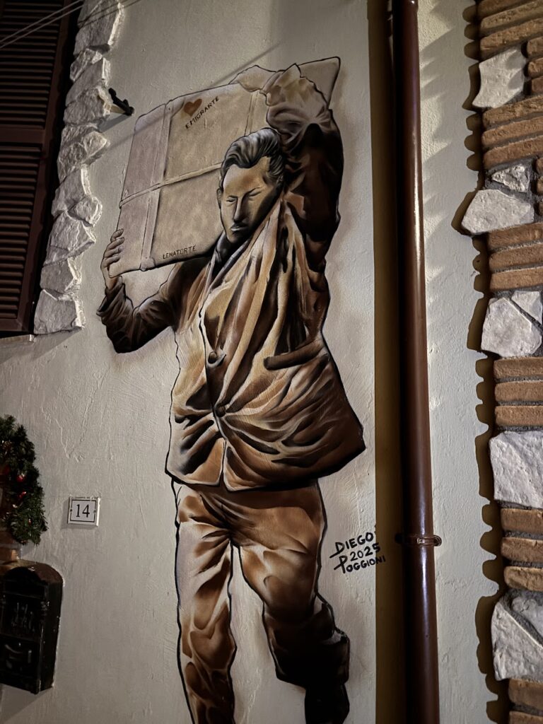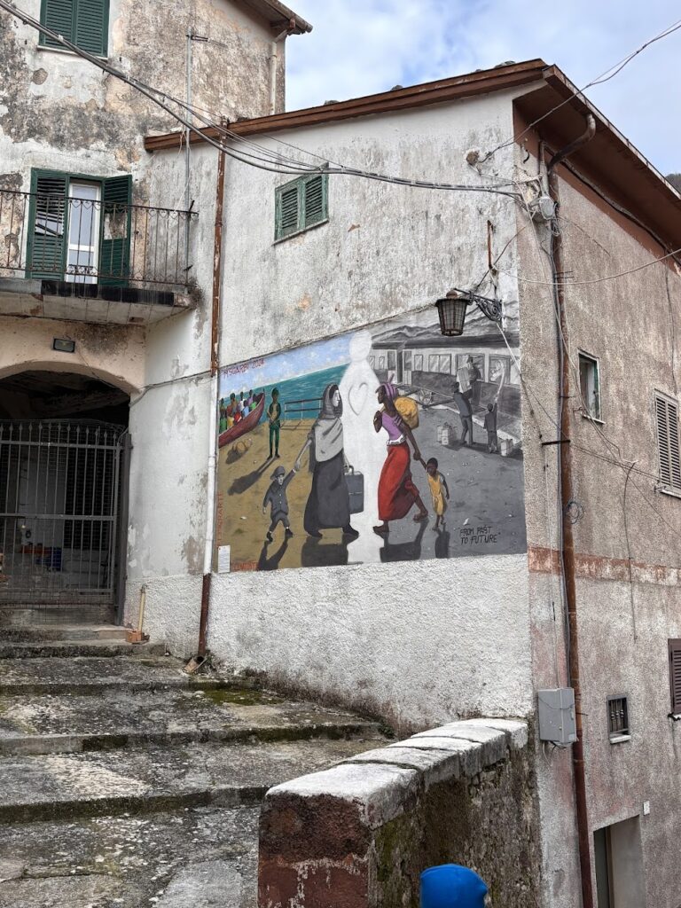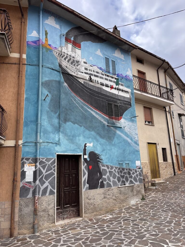 EmigrArte non è un semplice progetto di street art. È un racconto corale che prende forma sui muri del borgo.