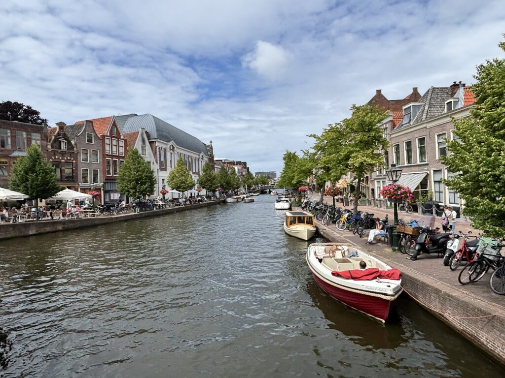 Impossibile non innamorarsi dei canali di Leiden. Ogni angolo sembra una cartolina: barche ormeggiate, casette strette e alte, biciclette appoggiate ai parapetti dei ponti, e poi vasi di fiori, tende bianche alle finestre, e quel silenzio ovattato tipico delle città d’acqua.