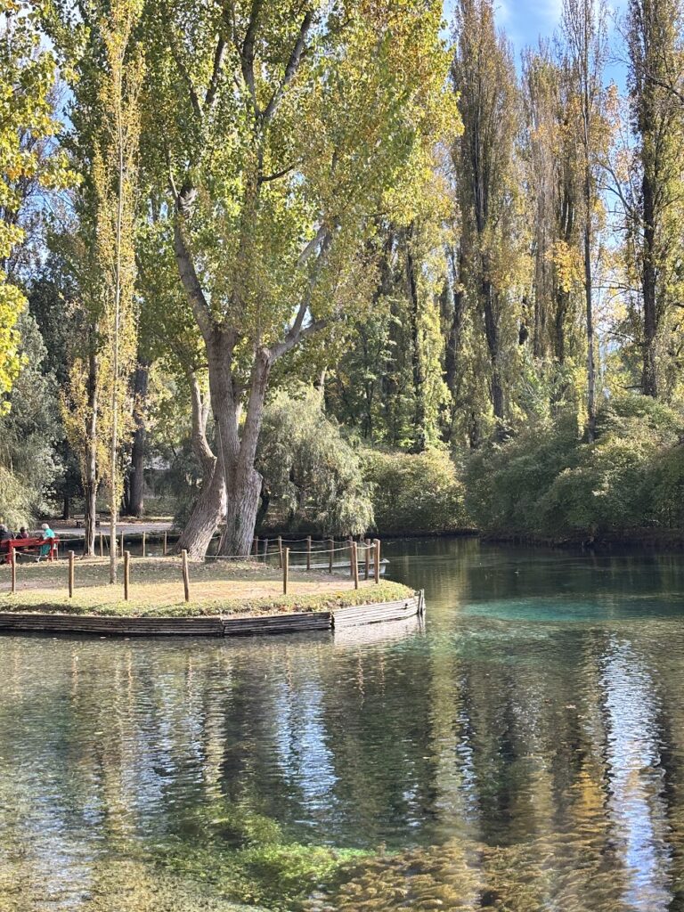 Ci sono posti che non ti chiedono di “fare” mille cose, ma solo di fermarti, respirare e guardarti intorno. Le Fonti del Clitunno, per noi, sono state esattamente questo: una pausa lenta e bellissima, in una giornata di sole, con poche persone nel parco e quell’effetto immediato “ok, qui si sta bene”.
